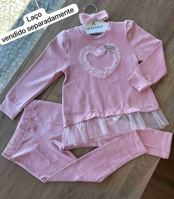 CONJUNTO BLUSÃO ML CORAÇÃO TULE LAÇO E CALÇA LEGGING MENINA INFANTI