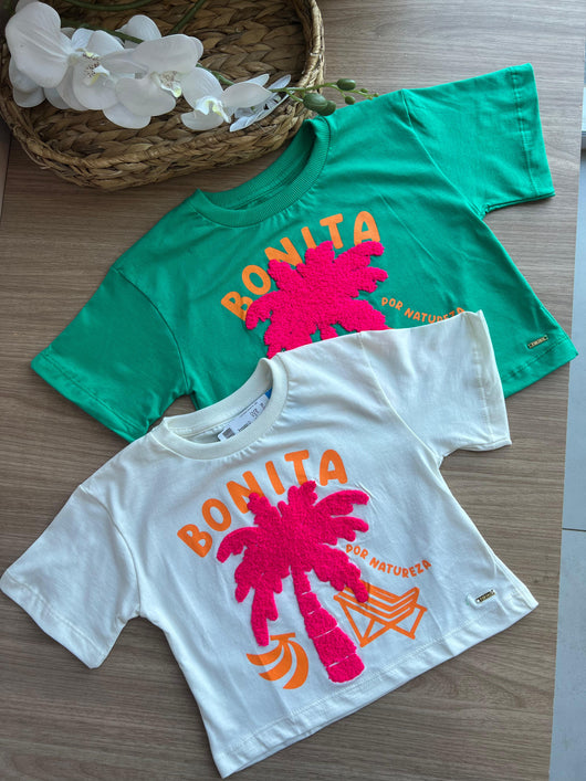 BLUSA MANGA CURTA GOLA REDONDA COQUEIRO BONITA POR NATUREZA MENINA FAKINI