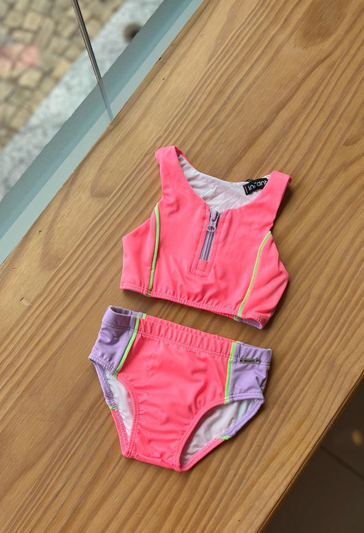 CONJUNTO BIQUINI REGATA COM ZÍPER E CALCINHA LISTRA PROTEÇÃO UV50+ MENINA INFANTI