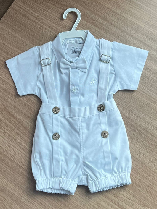 CONJUNTO BODY CAMISA MANGA CURTA BATIZADO SUSPENSORIO GRAVATA BORBOLETA E BERMUDA MENINO POLO INFANTI