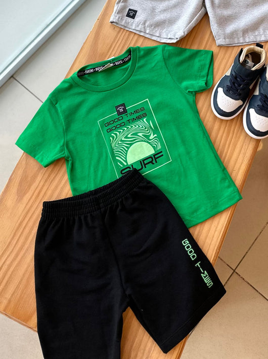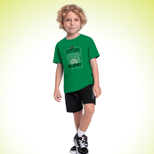 CONJUNTO CAMISETA MANGA CURTA SURF E BEMRUDA MOLETINHO GOOD TIMES