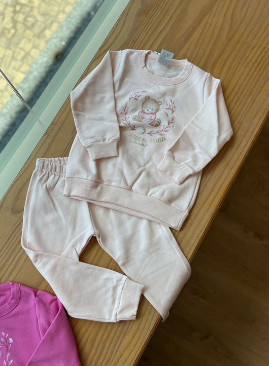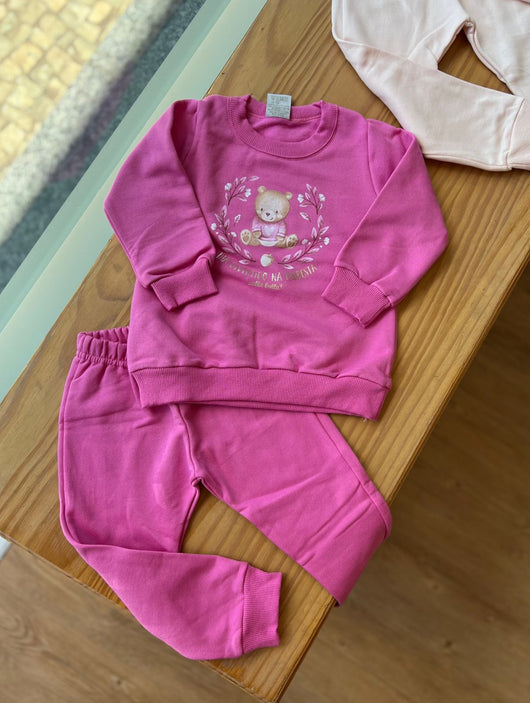 CONJUNTO MOLETOM MANGA LONGA FELPADO COM CALÇA URSO E FLORES MENINA PULLA BULLA