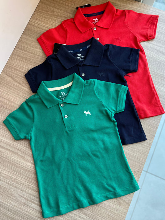 Polo manga curta com fechamento em botão funcional. Clássica, a polo confeccionada em piquet tem um toque macio. Seguindo o versão charmosa com bordado Charpey é peça indispensável no closet de todo menino antenado, combine com jeans ou sarja!