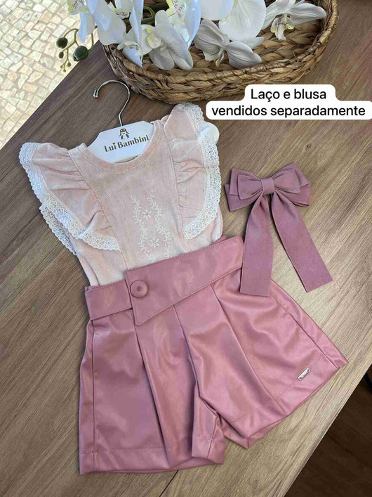 SHORT COURO CINTO FIXO MENINA INFANTI