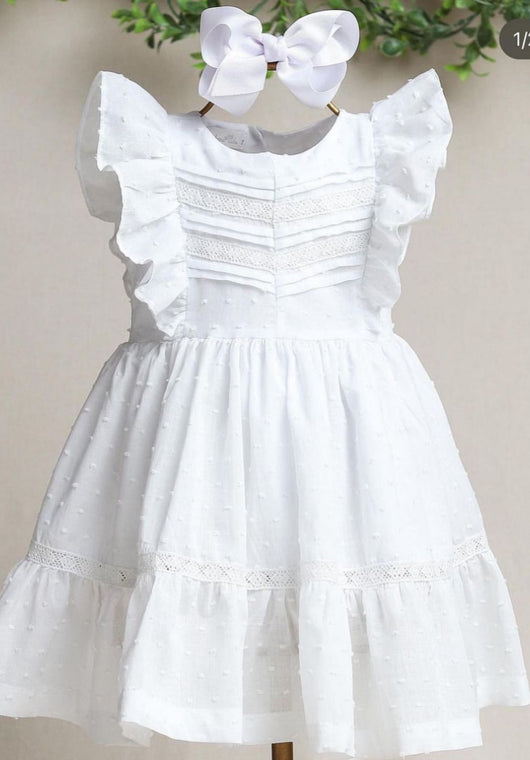 VESTIDO BATIZADO MANGA CURTA COM PLISSADO BABADO RENDA E POÁ MENINA BARBARA KIDS