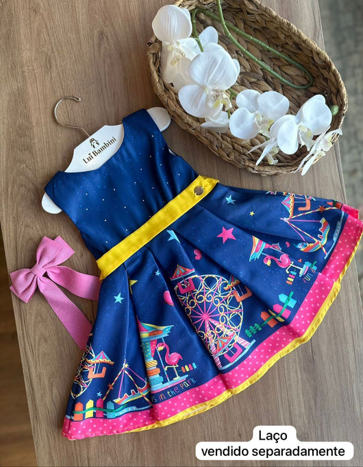 VESTIDO FESTA REGATA CINTO LAÇO PARQUE DIVERSÕES STRASS MENINA MALAGAH