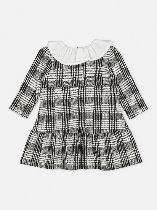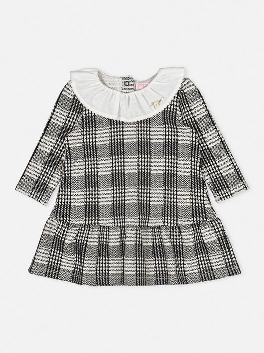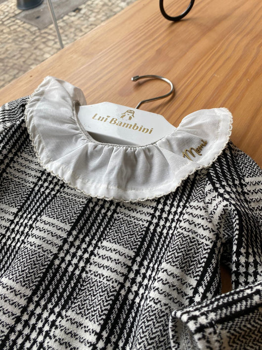 VESTIDO MANGA LONGA XADREZ JACQUARD COM GOLA BORDADA MENINA MOMI