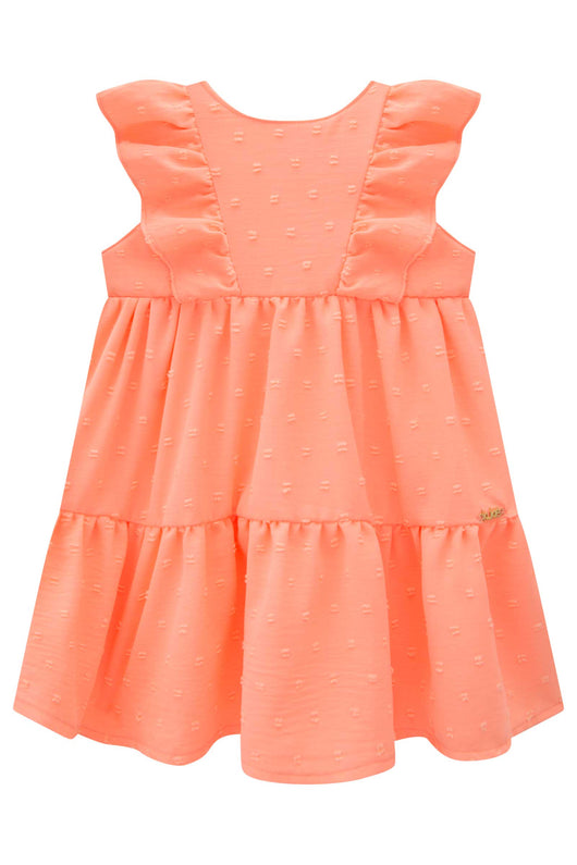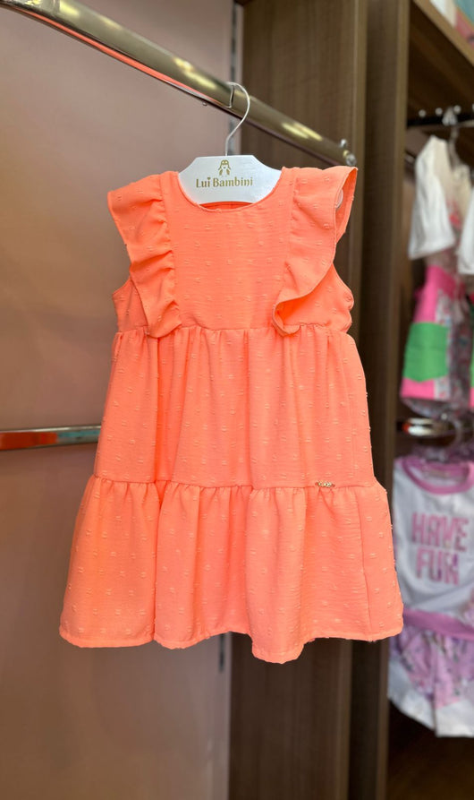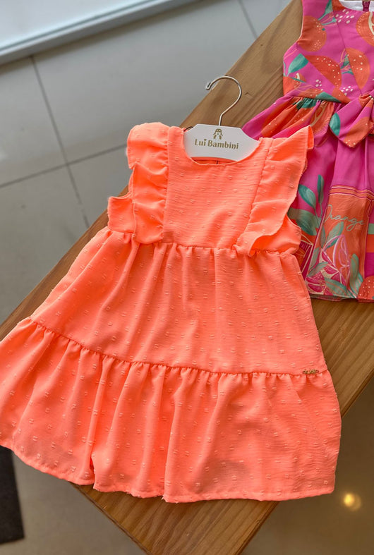 VESTIDO REGATA NEON COM BABADO OMBRO E POÁ ENTREMEIOS MENINA KUKIE