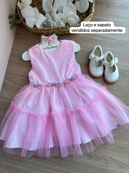 VESTIDO REGATA TULE STRASS LAÇO MENINA MÁLAGAH